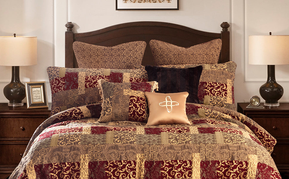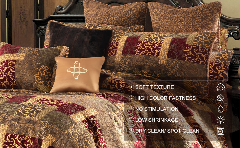 This stunning and opulent jacquard comforter set in patchwork style will create a lavish and chic looking to your bedroom. The beautiful and elegant design could match everything perfectly.