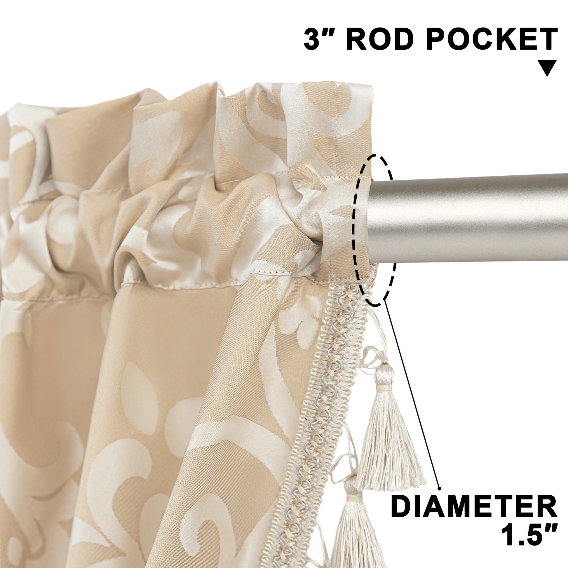 A 3" rod pocket fits a curtain rod up to 1.5" in diameter.