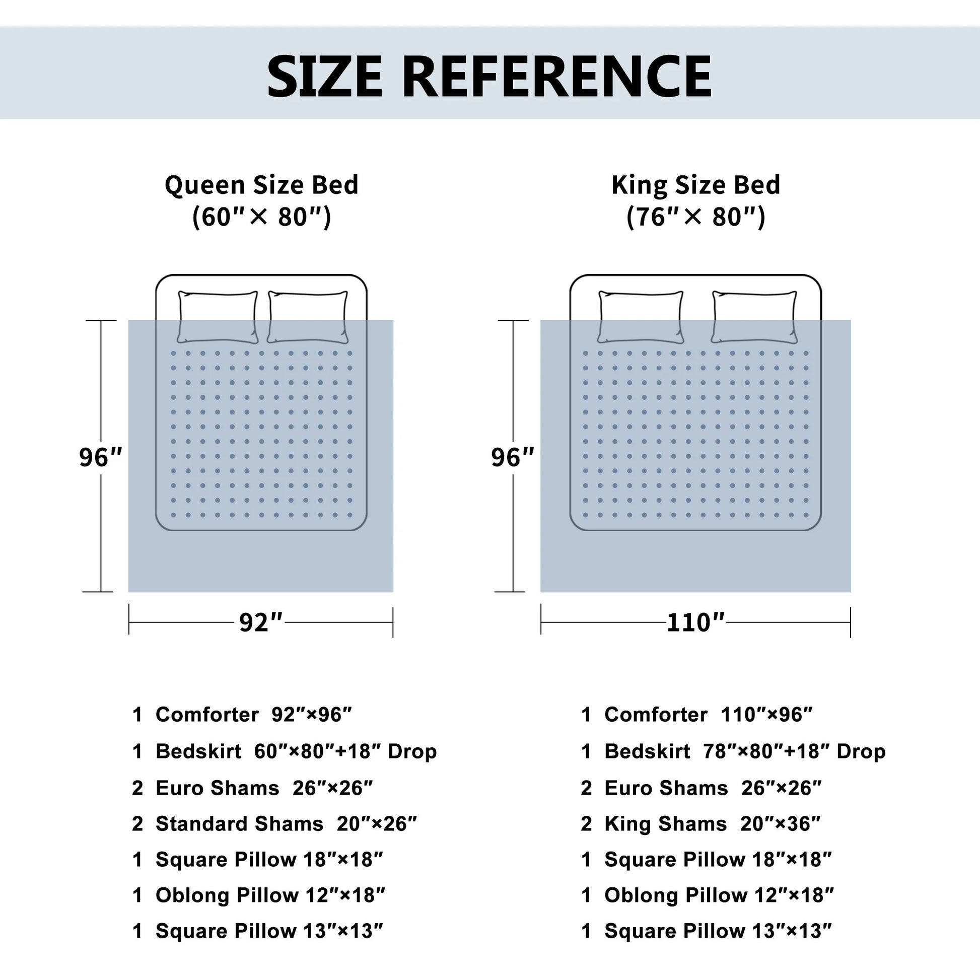 | Comforter | 92"×96" | 110"×96" |